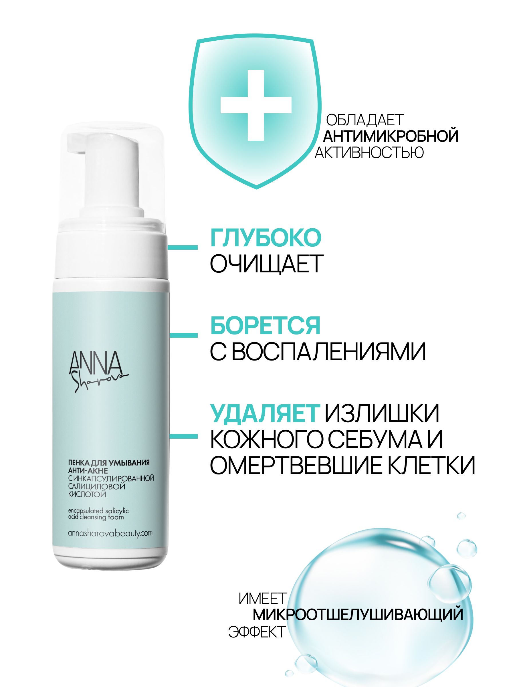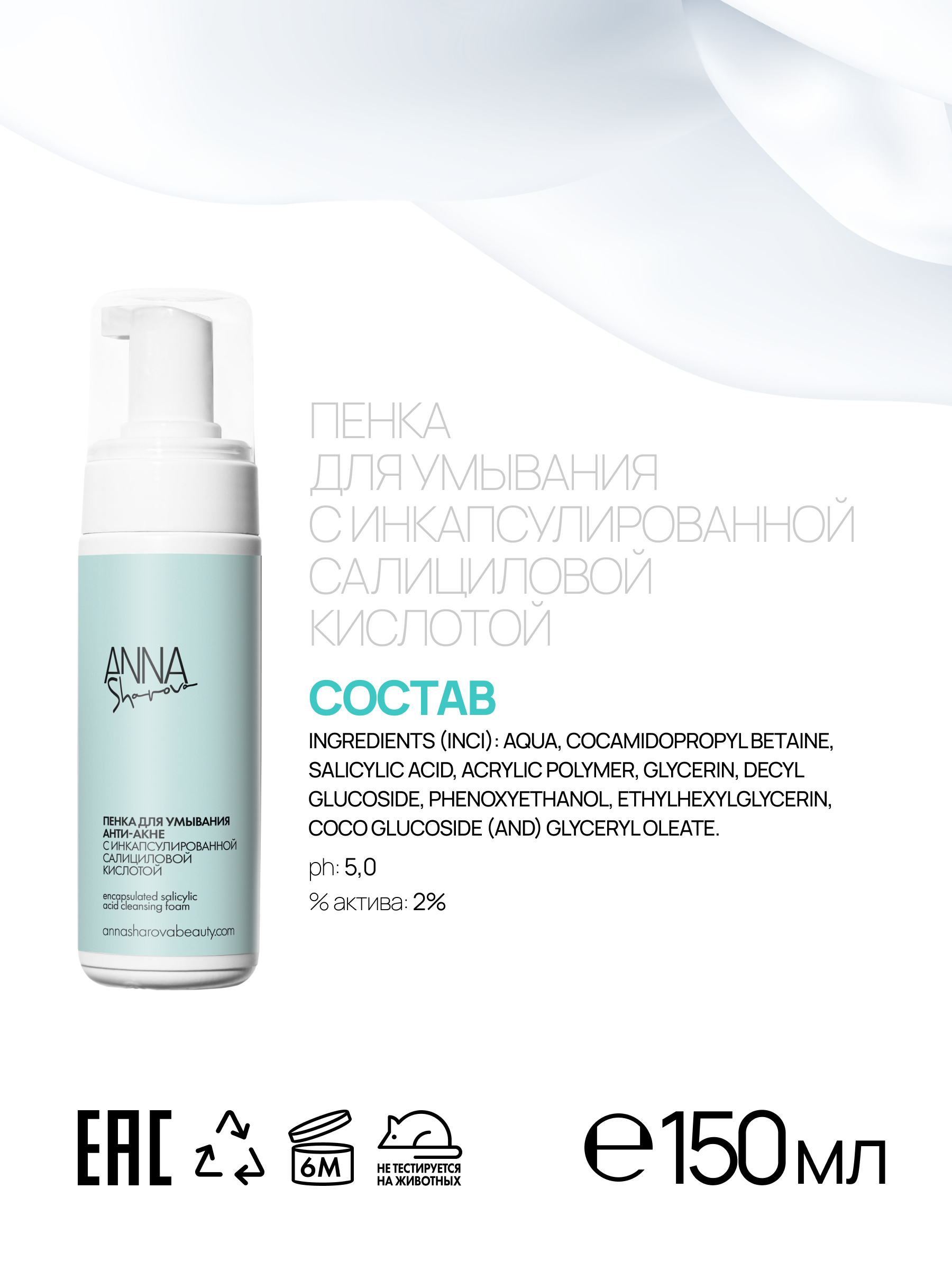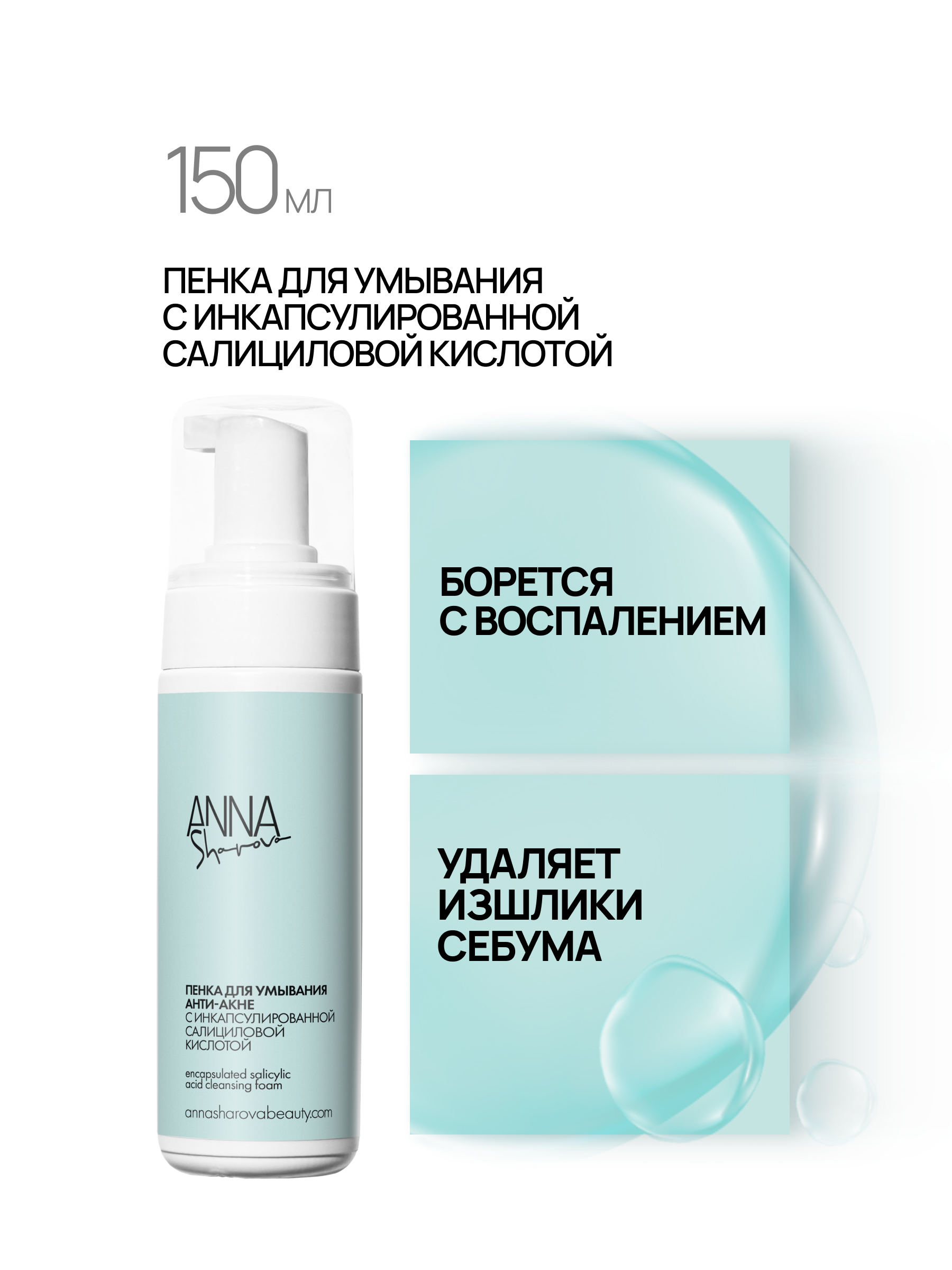 Пенка для умывания с инкапсулированной салициловой кислотой – универсальное средство для глубокого очищения пор от загрязнений. Эффективно борется с воспалениями, обладает антимикробной активностью, мягко удаляя излишки кожного себума и омертвевшие клетки. Она станет незаменимым помощником как при проблеме акне, так и при периодических высыпаниях, сопровождаемых раздражением и покраснением. Многофункциональность инкапсулированной салициловой кислоты позволяет пенке быть результативным средством для очищения кожи без сухости и раздражения после, успокаивает и способствует быстрому восстановлению кожи и ее регенерации. Обладает микроотшелушивающим эффектом.